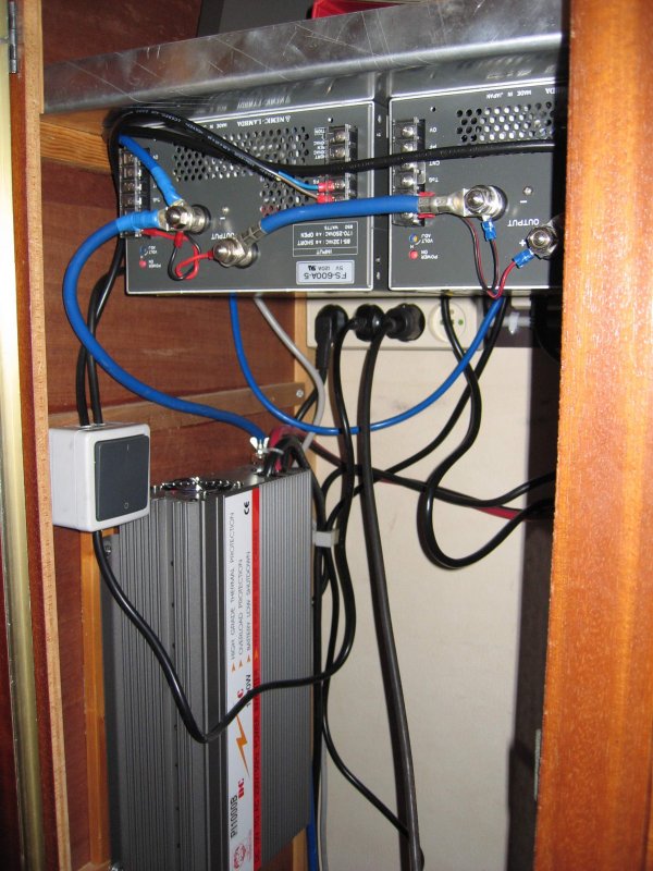 Er is ook nog een velleman 1000W convertor met een aparte semi-tractie batt van 200 Ah die bijgeladen (voeding 13,5V 120A) wordt als er 220V aanwezig is.