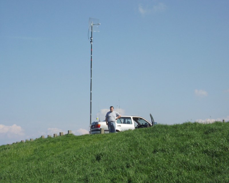 Elsa Airlancer MC-11 30mW, 4m ecoflex 10 coax, 24 Dbi parabolic antenna on 6m height.